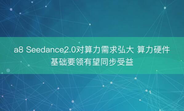 a8 Seedance2.0对算力需求弘大 算力硬件基础要领有望同步受益