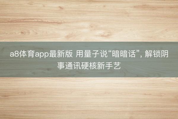 a8体育app最新版 用量子说“暗暗话”, 解锁阴事通讯硬核新手艺