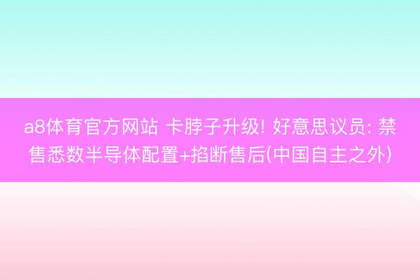 a8体育官方网站 卡脖子升级! 好意思议员: 禁售悉数半导体配置+掐断售后(中国自主之外)