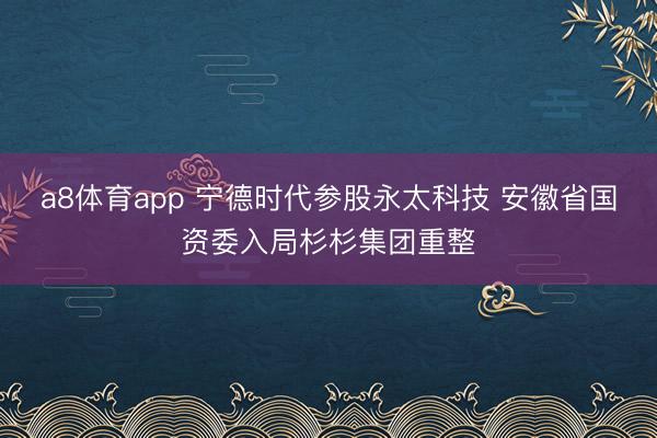 a8体育app 宁德时代参股永太科技 安徽省国资委入局杉杉集团重整
