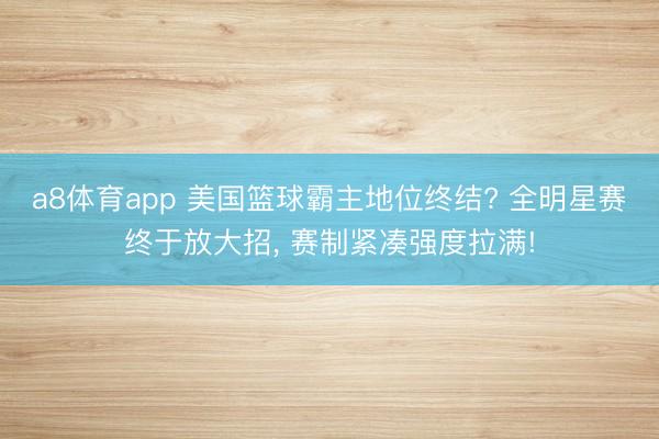 a8体育app 美国篮球霸主地位终结? 全明星赛终于放大招, 赛制紧凑强度拉满!