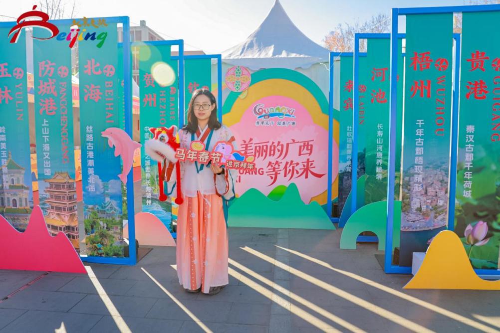 【人人网文旅报谈】2026年马年春节,“马年春节进京过年”行径在京城各大庙会同步启幕。广西文旅展团自朔方小年前夜入驻东岳文化广场,将壮乡风味与当代潮水相融共生,以“京桂心连心,扫数过大年”为主题,为齐门新春注入浓郁八桂风情。