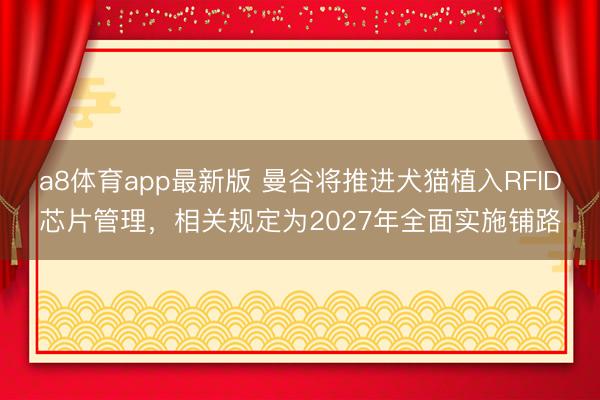a8体育app最新版 曼谷将推进犬猫植入RFID芯片管理,相关规定为2027年全面实施铺路