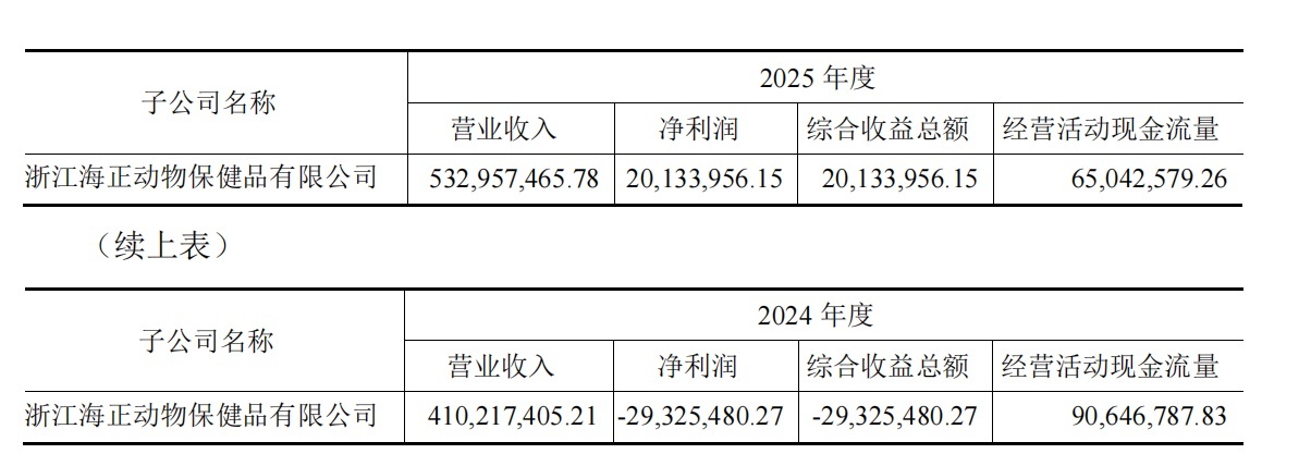 2025年,浙江海正药业股份有限公司杀青营业收入约105.5亿元,与上年基本持平,但扣非归母净利润约5.86亿元,同比增长36.11%。与此同期,被外界奉求厚望的动物保健板块,在资格了2024年的亏本之后,子公司浙江海正动物保健品有限公司于2025年杀青营业收入约5.33亿元,同比增幅接近30%,净利润扭亏为盈。这一回转天然幅度尚不行称为“爆发”,却符号着海正在宠物医疗赛说念的布局驱动产生实质性酬报。
