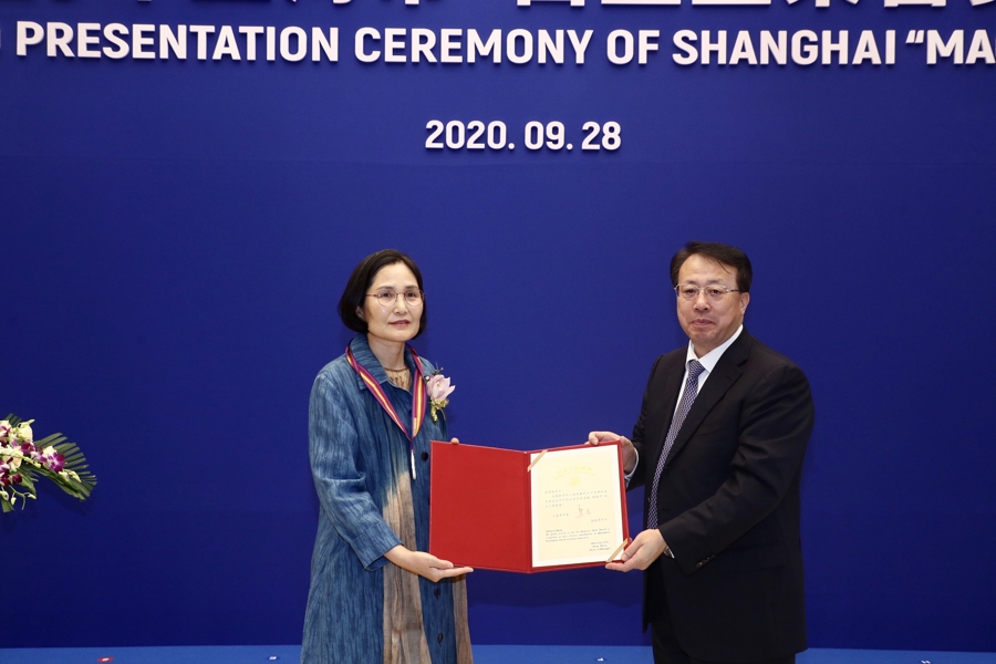 2020年9月28日,洪原淑获取上海市“白玉兰荣誉奖”。(图片由受访者提供)