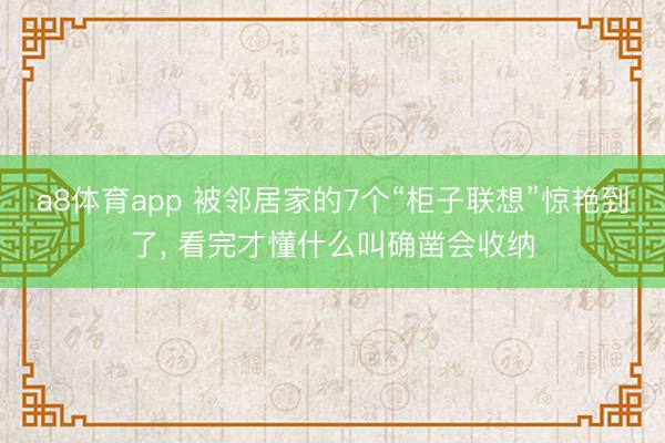 a8体育app 被邻居家的7个“柜子联想”惊艳到了, 看完才懂什么叫确凿会收纳
