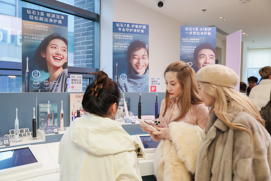 步履上,飞利浦推出两款首发新品——飞利浦旋护新9系Ultra新意截止版和钻石智能导航刷。门店还打造千里浸式“芳华焕颜站”,聚焦口腔净护、肌肤净护、头皮养护三大健康场景,展示专科的个护科技,如电动牙刷微泡水流科技、剃须刀微提切旋护科技、吹护机头皮舒养好意思发科技,销耗者不错切身感受并找到确凿合适我方的个护焕新有讨论。