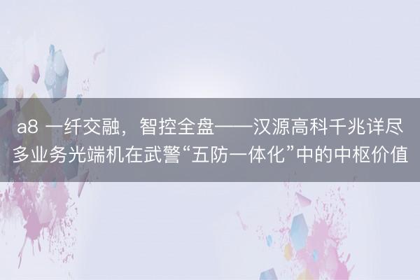 a8 一纤交融,智控全盘——汉源高科千兆详尽多业务光端机在武警“五防一体化”中的中枢价值