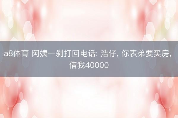 a8体育 阿姨一刹打回电话: 浩仔, 你表弟要买房, 借我40000