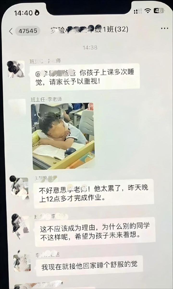 事情的启事,是一位学生上课时屡次打打盹儿,于是班主任在班级群里发言提示家长。这位学生的爸爸解说是功课太多了,昨晚12点多才作念完。班主任说这不应该成为事理,为什么别的同学不这样呢?但愿他能够为孩子的以前着想。
