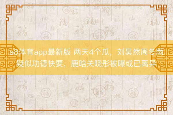 a8体育app最新版 两天4个瓜,刘昊然周冬雨疑似功德快要,鹿晗关晓彤被曝或已离异