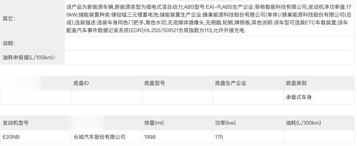 能源方面,从工信部信息来看,新车将提供1.5T和2.0T发动机,最大功率别离为125kW和175kW;电板方面,新车将提供42.8kWh和64.7kWh两种容量经受。