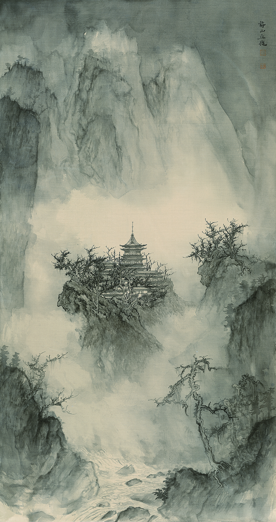丘挺 《千壑幻雪》之二 绢本水墨 2024-2025