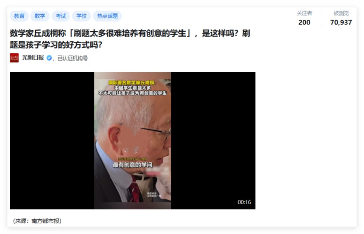 丘成桐说得对,刷题太多会抹杀创意。
