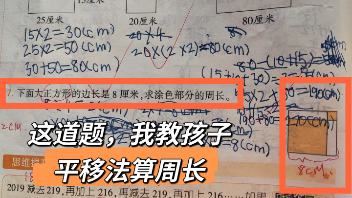 先说我家的情况。这周,学校有别的班厚实来上公开课,讲正方形和长方形的内容,数学厚实就把这章跳过了,径直去学背面的统计章节。但我买的口算题是按章节来的,内部出现了求周长的问题,还有需要出动线条去算周长的题型。