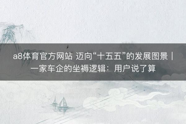 a8体育官方网站 迈向“十五五”的发展图景|一家车企的坐褥逻辑:用户说了算