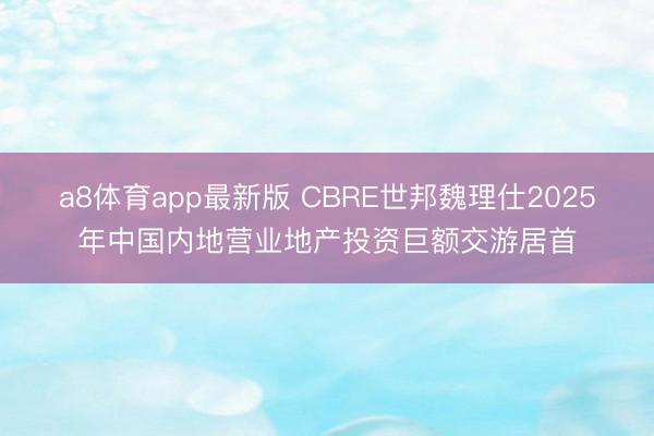 a8体育app最新版 CBRE世邦魏理仕2025年中国内地营业地产投资巨额交游居首