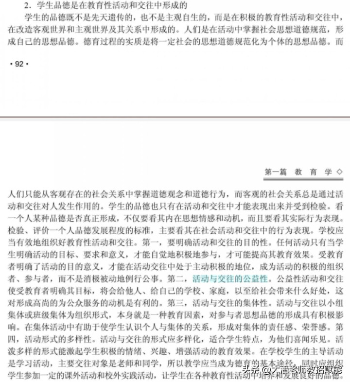 学生品德在教化性行为和往来中变成,东谈主们从社会干系中掌执谈德不雅念与步履,学生品德也在其中得以推崇和闇练。学校组织教化性行为和往来应作念到:明确主义性,让学生主动参与;谨防公益性,培养为公众就业动机;强调集体性,变成集体职守感等;保证神志种种性,激勉学生酷好酷好。教学是智育基本道路,还应组织课外行为、校外施行行为培养学生品德。
