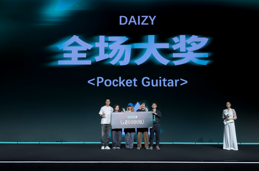 22岁的叶博文和队友一齐把音乐弹奏酿成游戏,用遥感本领作念了一款能放入口袋的卡片吉他智能硬件,一举摘得全场大奖和20万奖金。