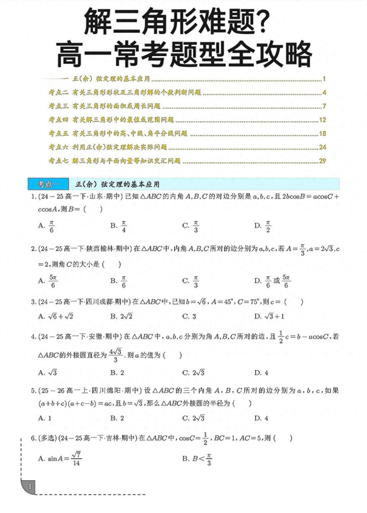 a8体育官方网站 解三角形周折? 高一常考题型全攻略
