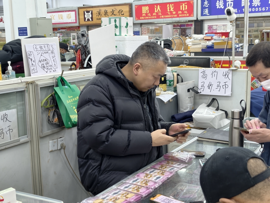 在上海卢工邮币卡走动商场,央行刊行的马年驰念钞、驰念币东说念主气茂盛(本文相片除尽头讲明外,均作家拍摄)