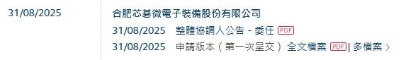 芯碁微装(688630.SH),于2021年4月1日在A股上市,于2025年8月31日向港交所递交招股书,中金公司独家保荐。